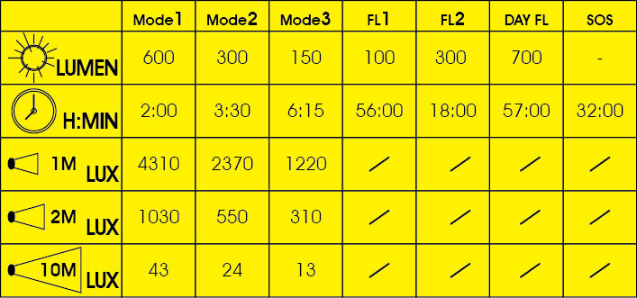 - Max. Lumens: 600LM (FL-1 tested)