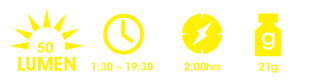 - Max. Lumens: 50LM (FL-1 tested)